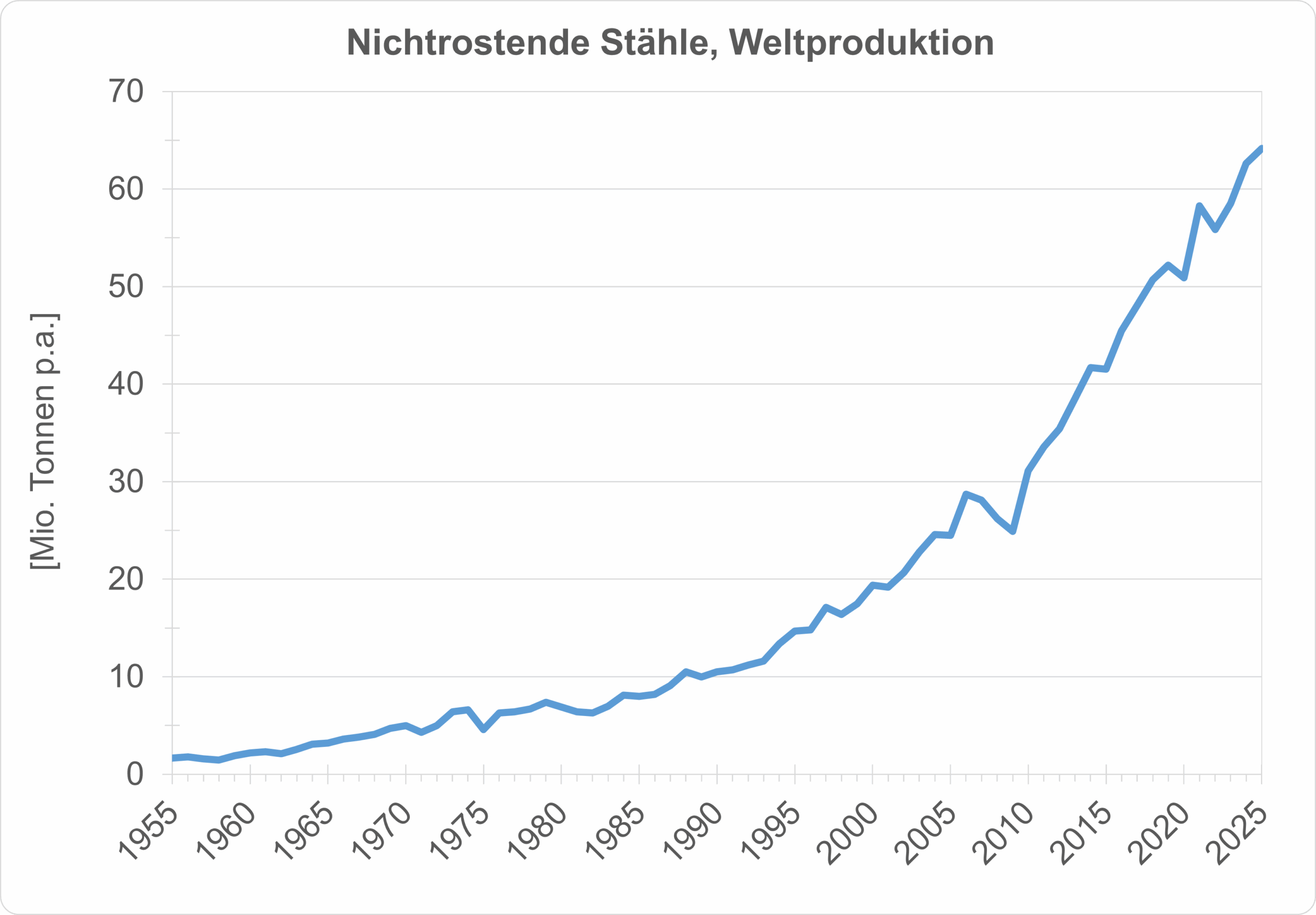 Weltweite Edelstahlproduktion steigt 2025 um 2,1 %